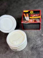 * مقداری از پودر را داخل درب قوطی بریزید.